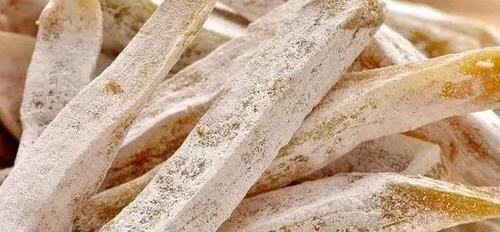 步骤二、接着先把地瓜切成一公分左右的厚片,然后再给切成条(切成一个方长条最佳),切好以后摆在通风凉干就可以(这个过程大约需要两个小时左右,冬天的太阳直射也没关系)