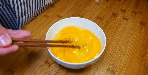 2.碗中打入四到五个鸡蛋,加入2克食盐和1克胡椒粉,把鸡蛋和调料充分搅散。