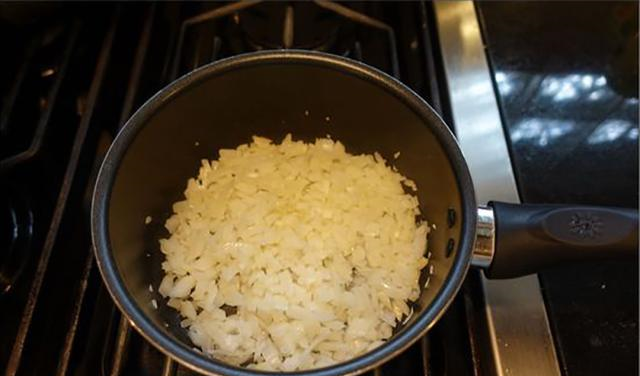 做法:1. 洋葱切小丁,再入锅中炒软,我加了1小匙奶油来炒。