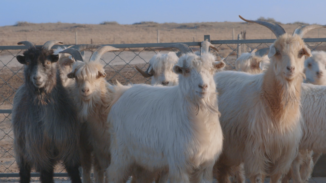 内蒙古自治区鄂尔多斯市鄂托克旗乌兰镇,牧民呼吉勒图、图雅夫妇的3000亩草场上,圈养着三百多只阿尔巴斯山羊。