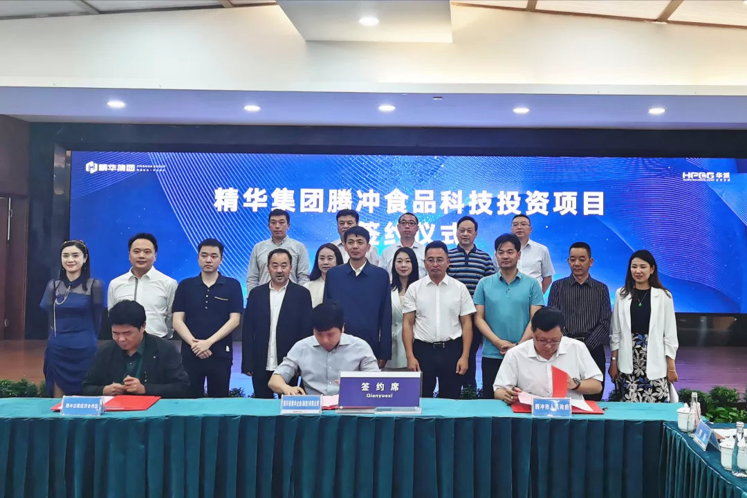 5月25日,腾冲市人民政府、腾冲边境经济合作区管理委员会与四川精华企业(集团)有限公司在四川简阳成功签订绿色食品配料(调味料)生产项目合作协议。