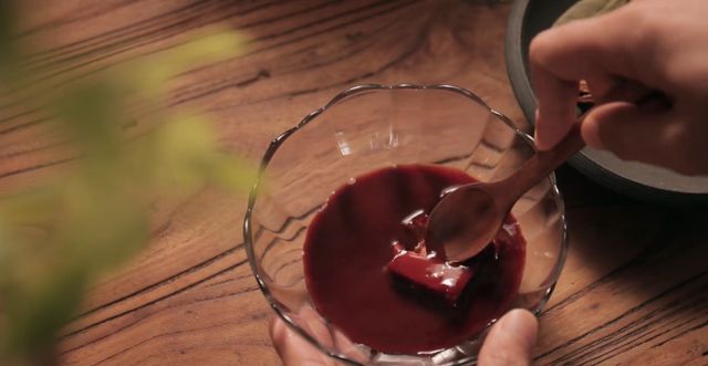 2.取出一个干净的碗,放入一块腐乳和适量的腐乳汁。然后用勺子将腐乳碾碎,并与腐乳汁搅拌均匀。