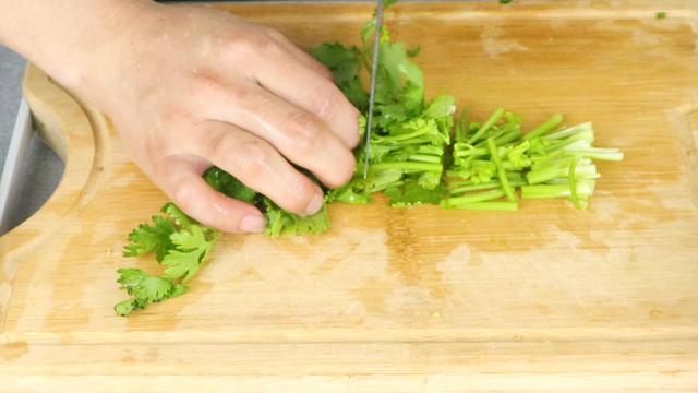 第三步:准备一些蒜米,拍碎之后去皮,剁成蒜末。再准备一些小米辣,切成辣椒圈,和蒜末放在一起,再加入两勺辣椒面。一把小葱,切成长段之后,切成葱花,和小米辣蒜米装在一起备用。一小把香菜,切成一寸长的小段,放在一边备用。