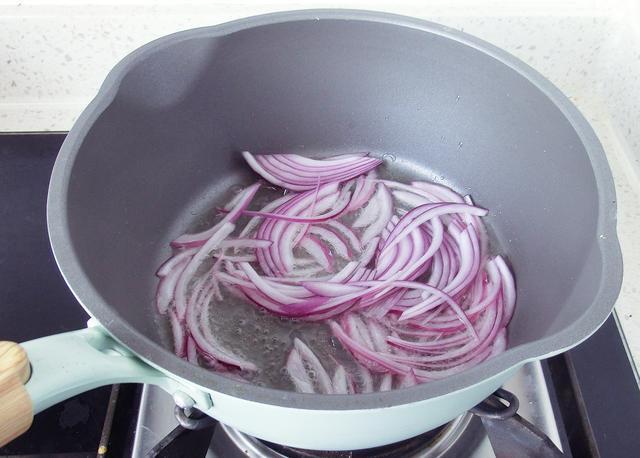 做法:1.锅中放入猪油,下洋葱丝,小火慢炸至金黄色。