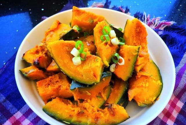 8,出锅前再撒上适量的葱花或香菜,盛出装盘就可以享用啦。南瓜的营养非常丰富,这样制作不需要添加多余的调味料,不仅原汁原味,保留了南瓜本身的清香与营养,口感上也更加粉糯鲜香,用我们东北话说“嘎嘎香”!在减脂期的小伙伴,也可以放心食用哦!