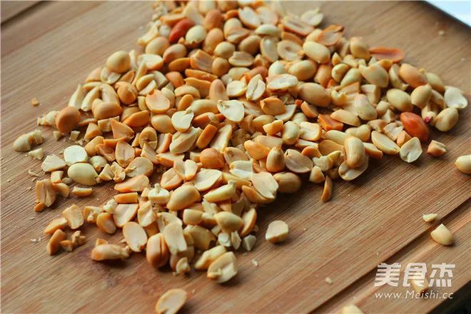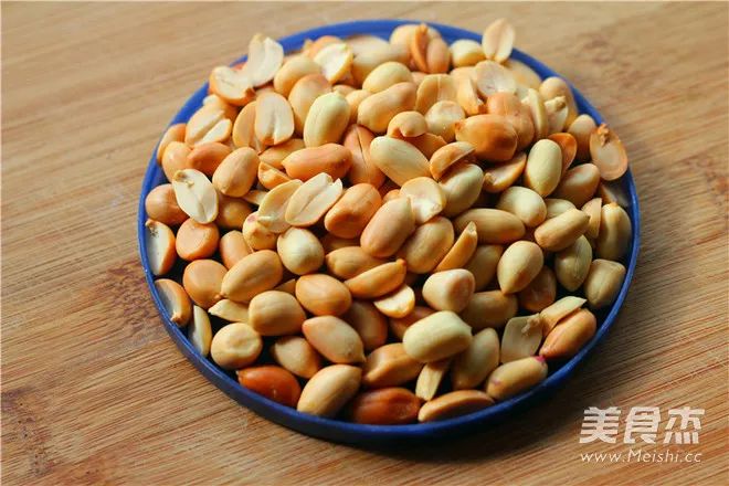 3.炒花生去皮。如果没有熟花生,可以用烤箱烤一下。
