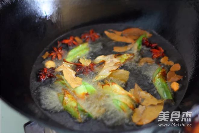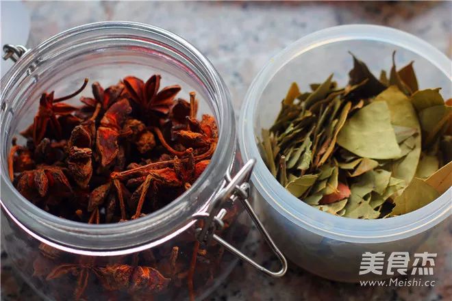 辅料:盐1勺、大葱半棵、八角5个、香叶适量、花椒适量
