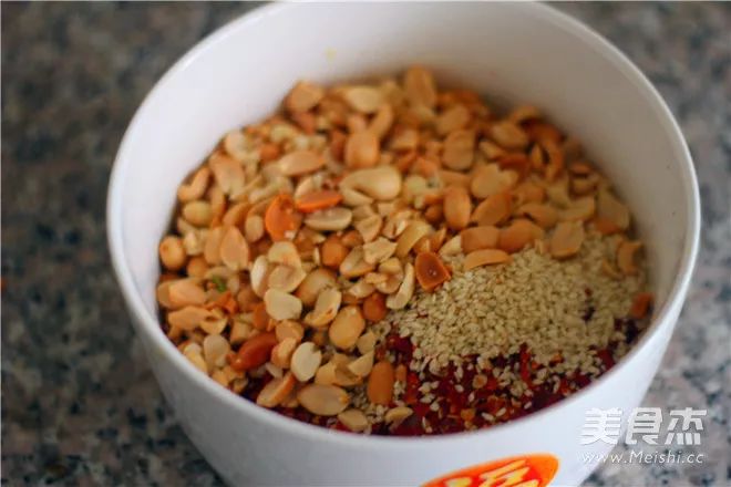主料:辣椒适量、芝麻三勺、花生小半碗、食用油1碗